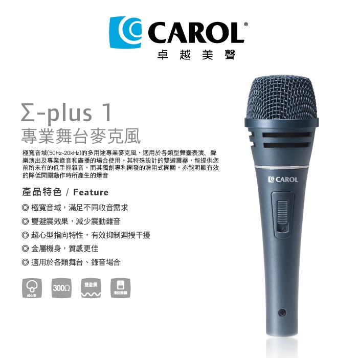 【CAROL】專業錄音舞台用麥克風 Σ-plus 1 雙避震、音域寬廣