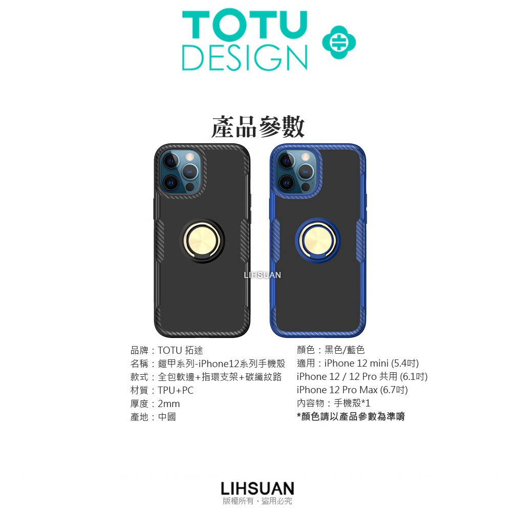 TOTU iPhone12/12Pro/12Mini/12ProMax手機殼防摔殼保護殼保護套 指環支架 鎧甲系列