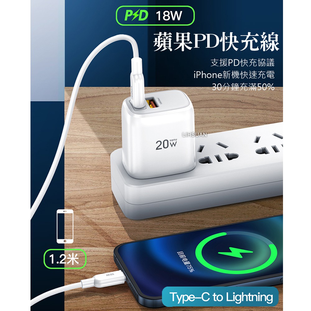 TOTU PD/Lightning/Type-C/iPhone充電線快充線傳輸線數據線 18W快充 靈犀系列 120cm