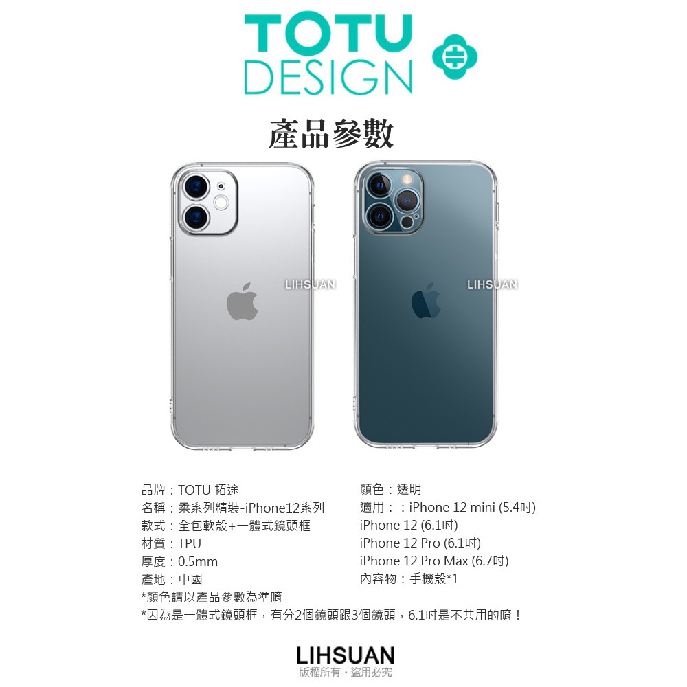 TOTU iPhone12/12Pro/12Mini/12ProMax手機殼防摔殼透明軟殼 一體鏡頭框 柔系列精裝