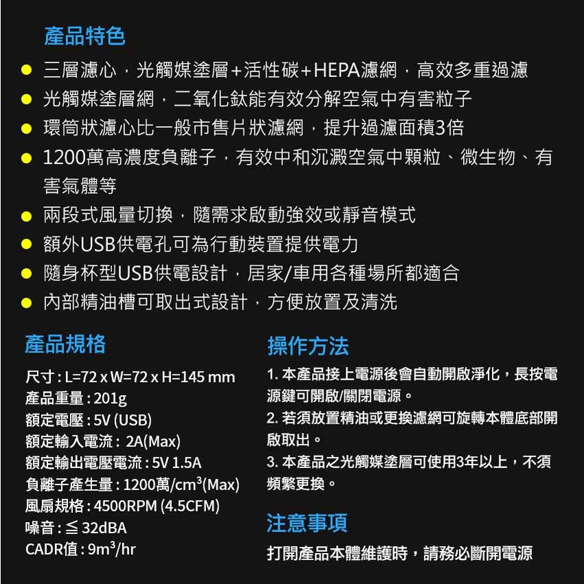 【Intopic】AI-150 三合一 光觸媒 空氣清淨器 車用 精油 三層過濾