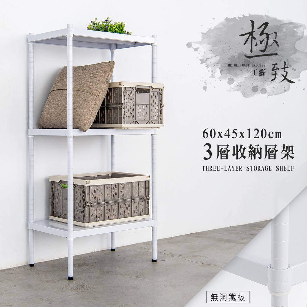 dayneeds 高強度鐵板三層收納層架60x45x120公分(烤漆兩色)單層荷重200kg 無洞鐵板層架 底部補強
