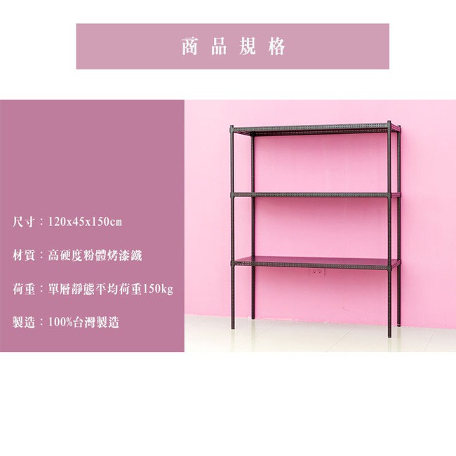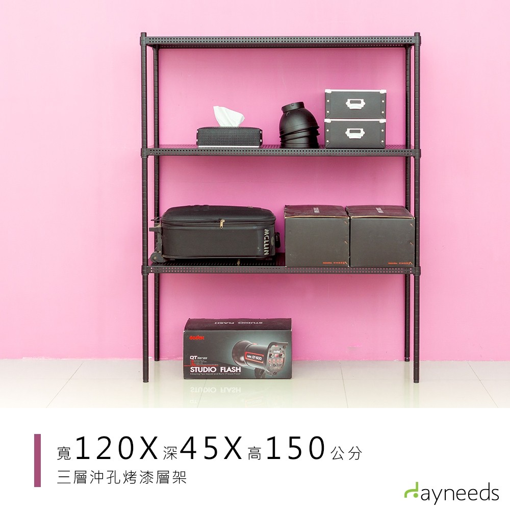 dayneeds 沖孔三層置物架120x45x150公分(烤漆黑)層架 置物架 鐵架 收納層架 鐵力士架 收納架 廚房架