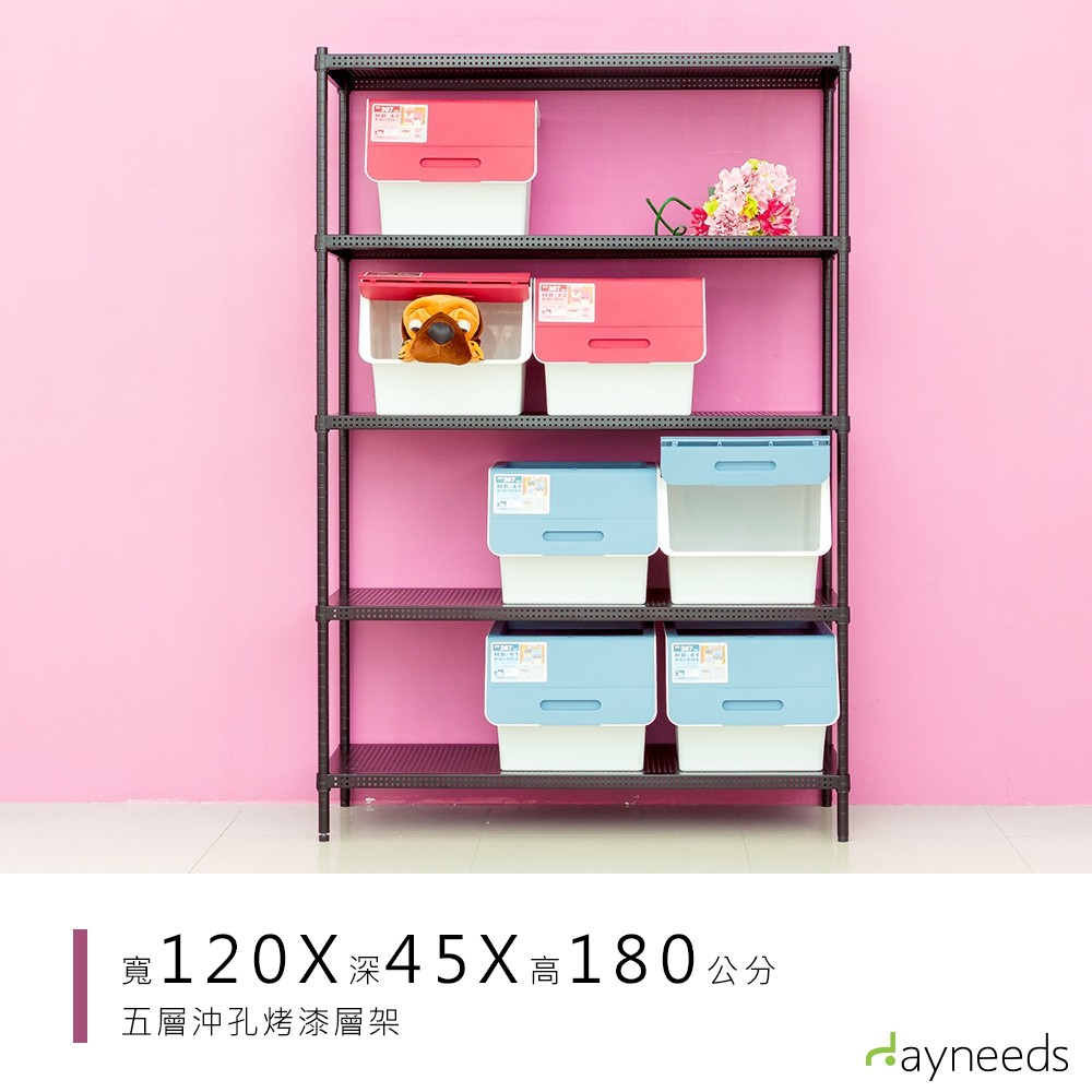 dayneeds 沖孔五層置物架120x45x180公分(烤漆黑)層架 置物架 鐵架 收納層架 鐵力士架 收納架 廚房架