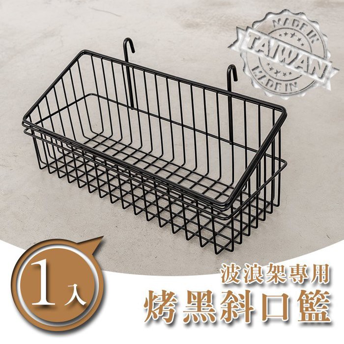 dayneeds 波浪架專用斜口籃-烤黑鐵架配件 掛籃 波浪架適用 置物籃 吊籃 掛飾收納籃