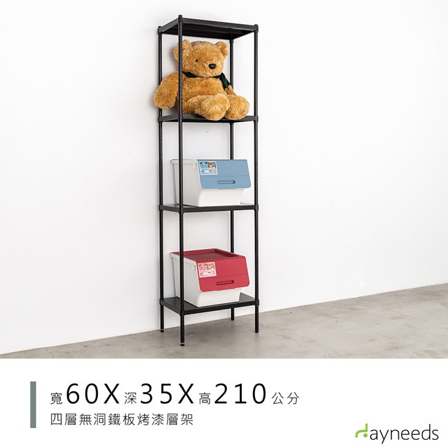 dayneeds 高強度鐵板四層收納層架60x35x210公分(烤漆黑)單層荷重200kg無洞鐵板層架 底部補強
