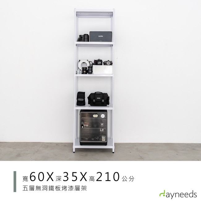 dayneeds 高強度鐵板五層收納層架60x35x210公分(烤漆白)單層荷重200kg無洞鐵板層架 底部補強