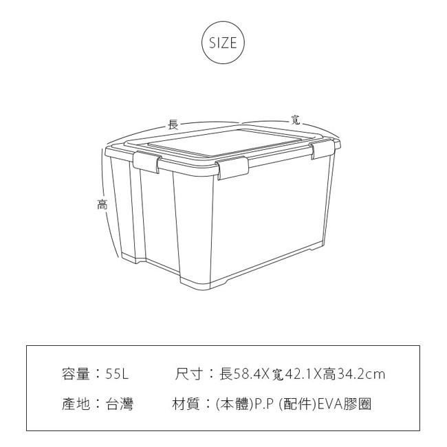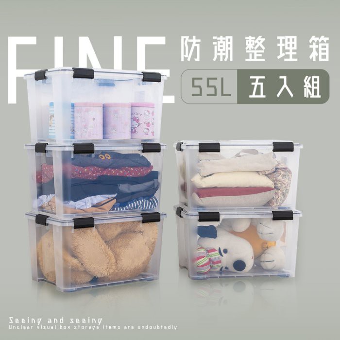 dayneeds 防潮整理箱55L(五入組)塑膠箱 衣物箱 收納箱 收納櫃 整理箱 雜物收納 倉庫