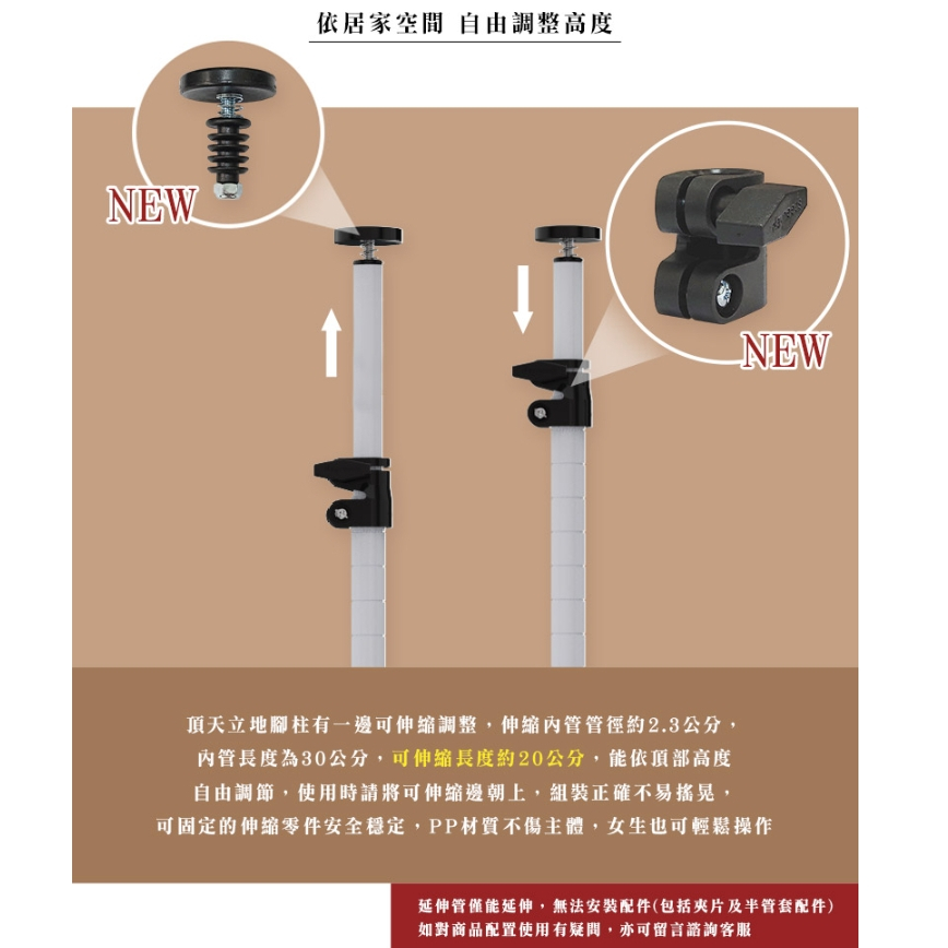 dayneeds 頂天立地(第三代改款)配件【高60-80cm桌上鐵管組2支】兩色可選 廚房架/桌上架/置物架/層架