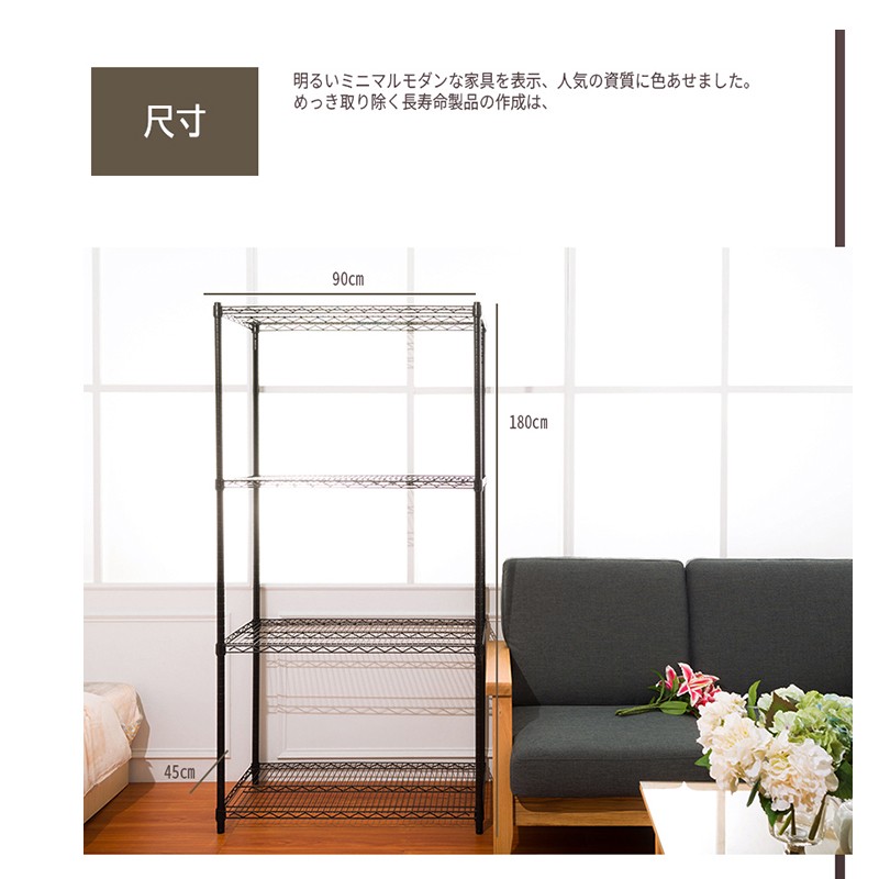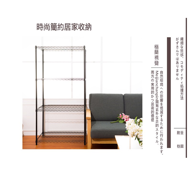 dayneeds 荷重型四層置物架90x45x180公分(烤漆黑)鐵力士架 收納架 廚房架 置物櫃