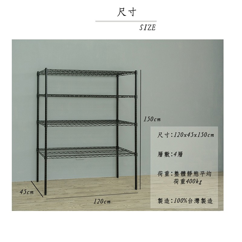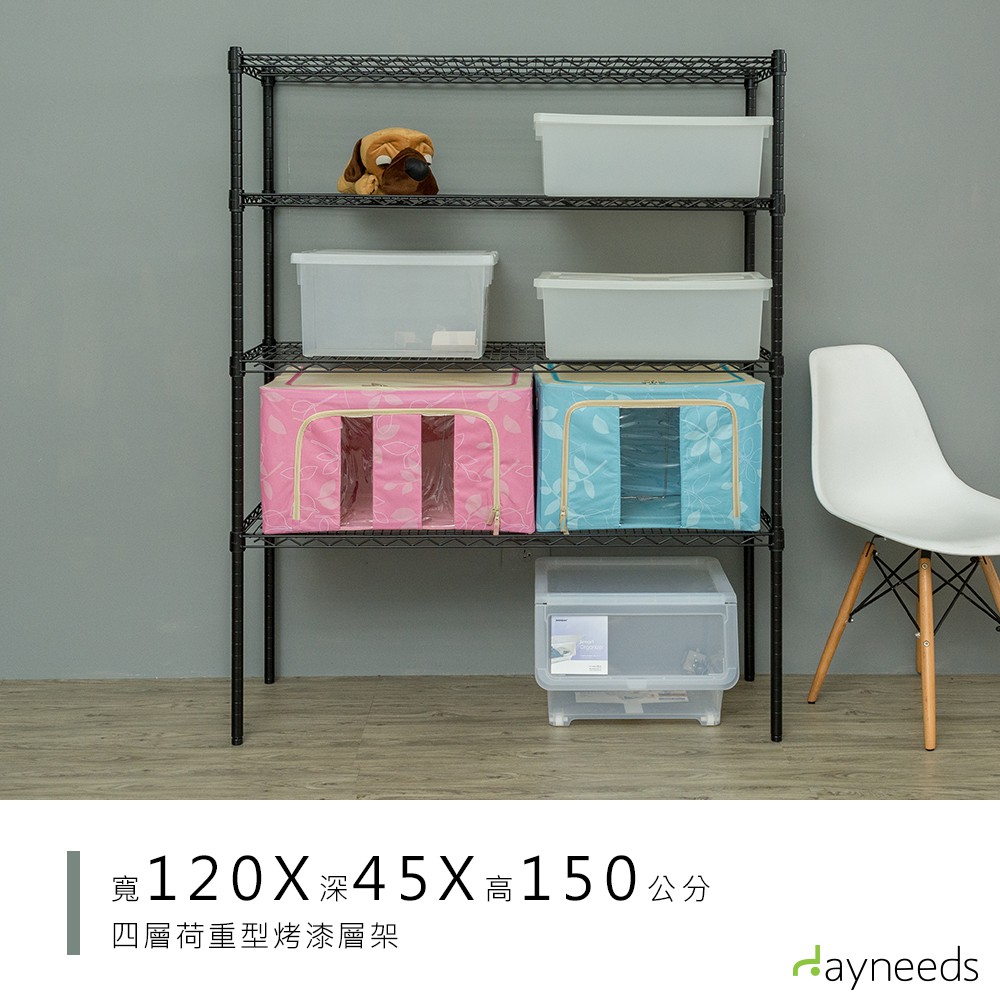 dayneeds 荷重型四層置物架120x45x150公分(烤漆黑)鐵力士架 收納架 廚房架 置物櫃