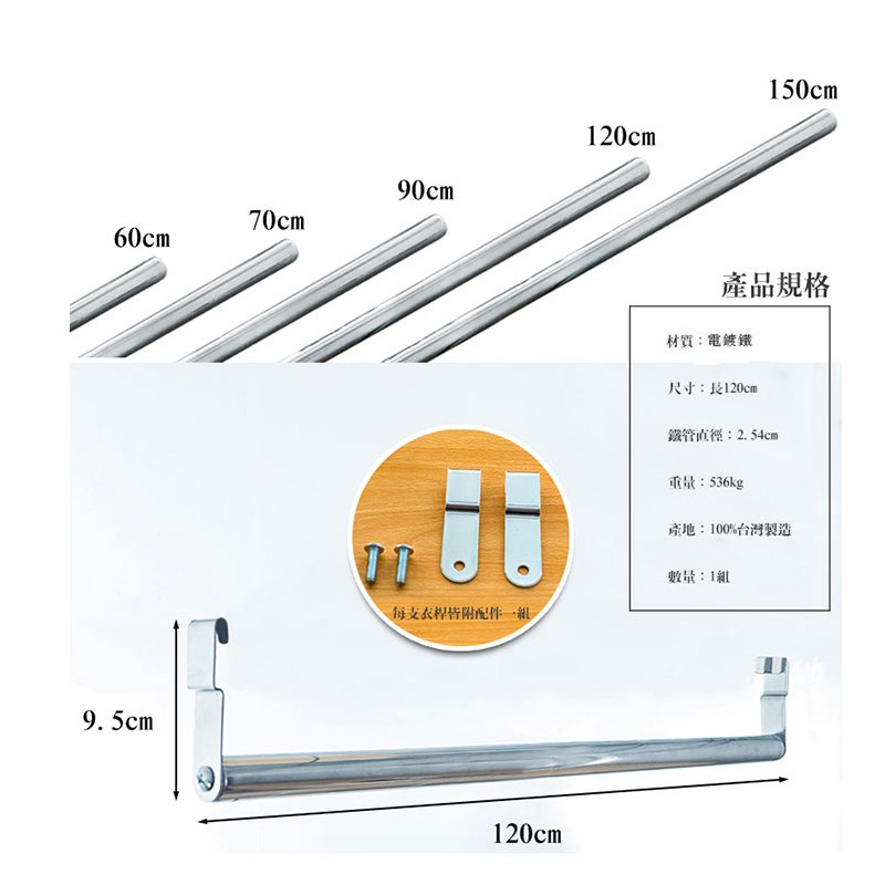 dayneeds 吊衣桿120波浪架專用(電鍍/烤漆)鐵架衣桿 鐵架掛桿 鐵架掛衣服 橫桿