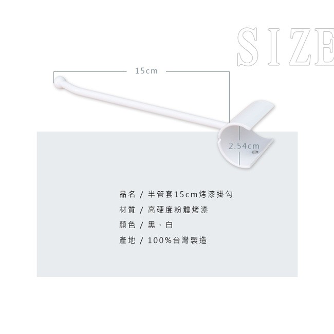 dayneeds 半管套烤漆掛勾(15公分)兩色有附夾片
