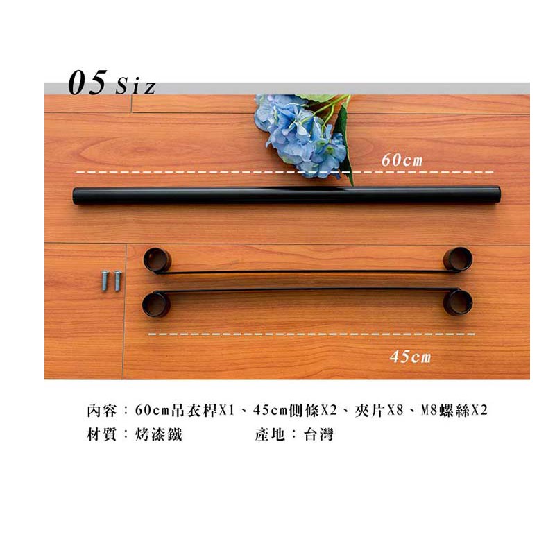 dayneeds 60公分烤黑側條吊衣桿組鐵架衣桿 鐵架掛桿 鐵架掛衣服 橫桿