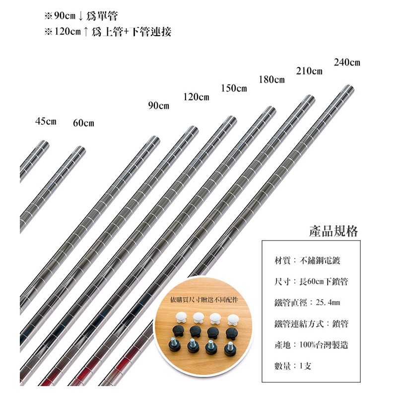 dayneeds 120公分一吋鎖管(電鍍/烤漆)