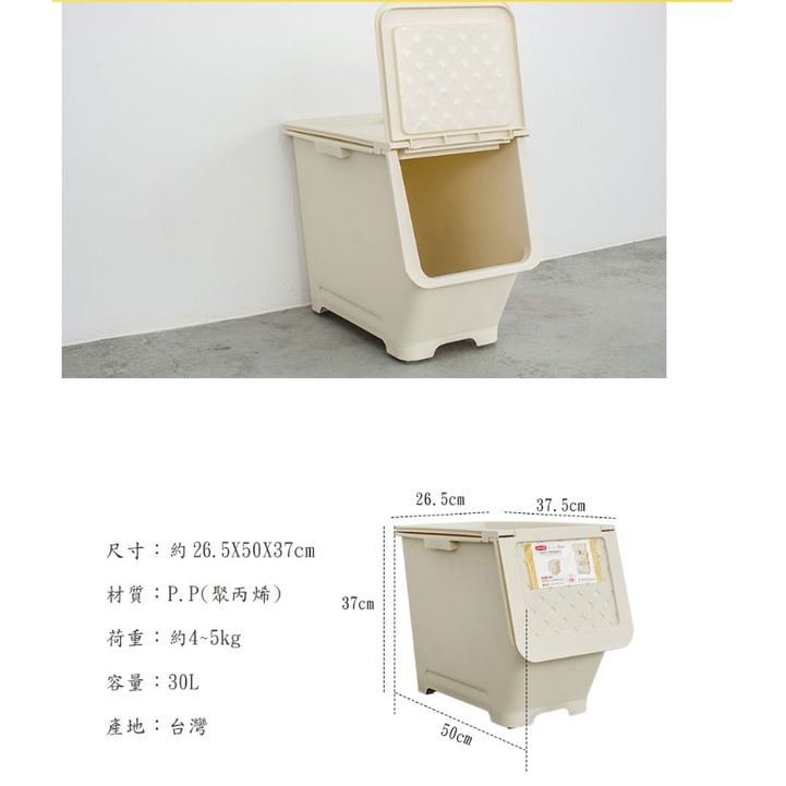 dayneeds可堆疊直取式收納箱(30L四入)米盧斯塑膠箱 整理箱 堆疊箱 掀蓋箱 衣物箱