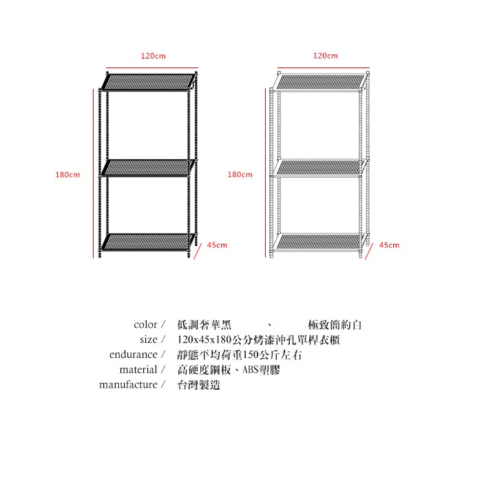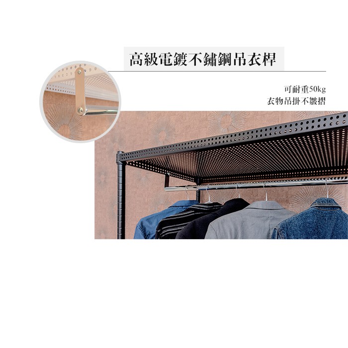 dayneeds 沖孔三層單桿/雙桿衣櫥架120x45x180/210公分(烤漆黑)