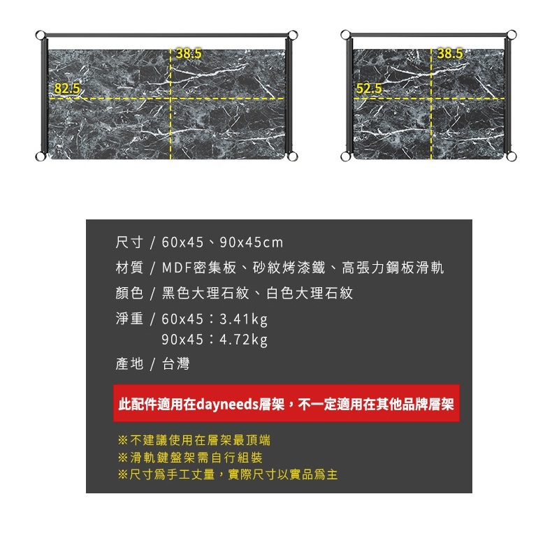 dayneeds (60x45)(90x45)層架專用 滑軌層板 滑軌鍵盤架(兩色)附夾片