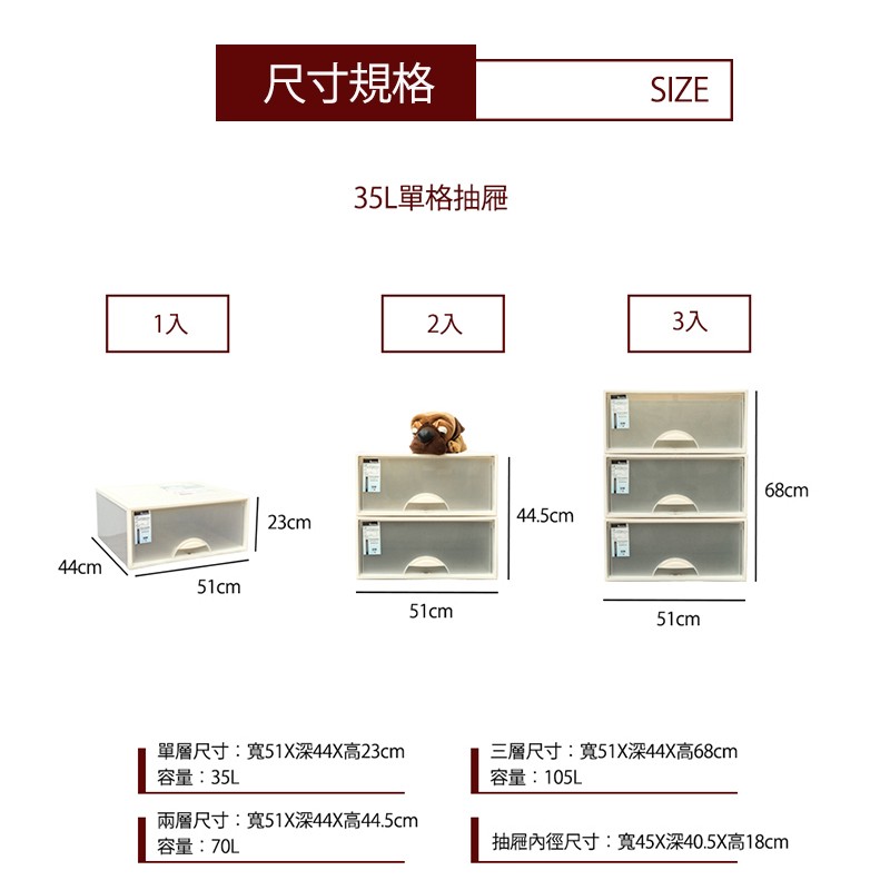 dayneeds 簡約澄亮可自由堆疊(單格)抽屜收納櫃(1入)