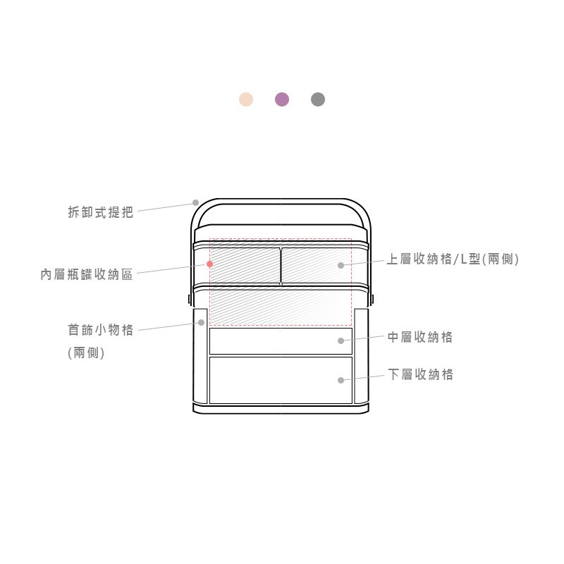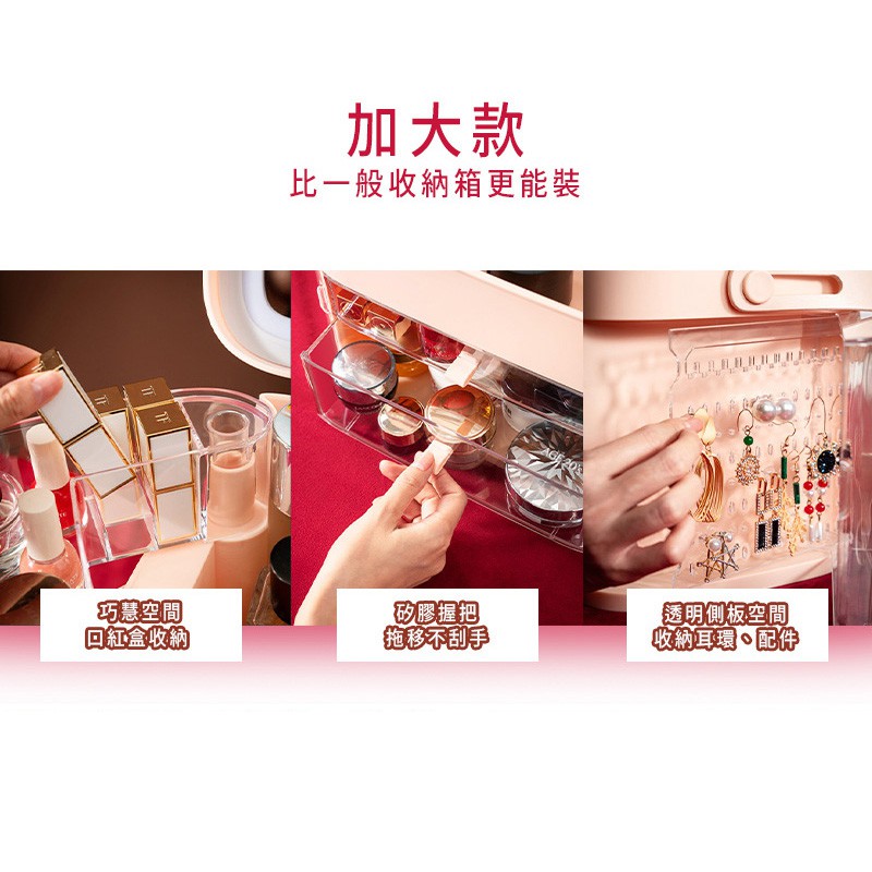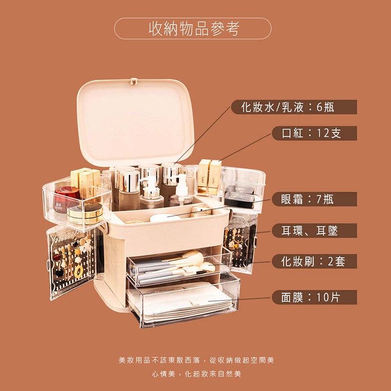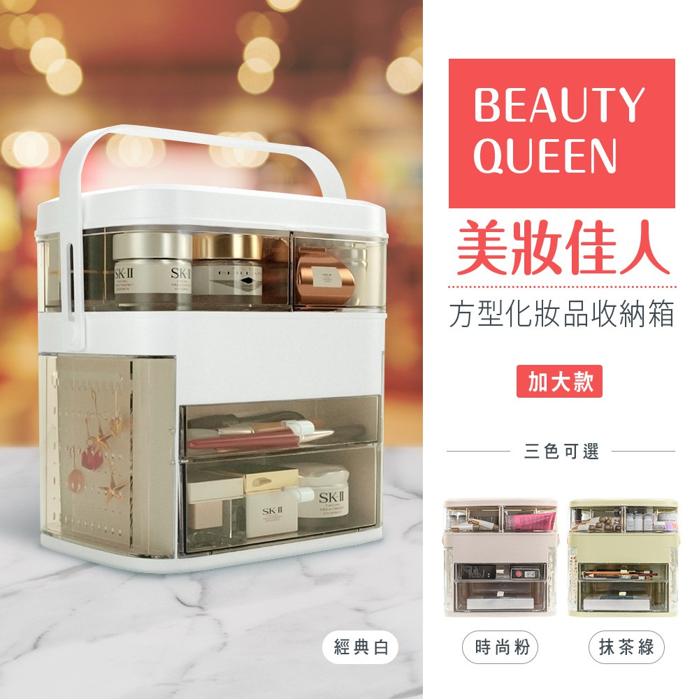 dayneeds 加大款方型化妝品收納箱(三色可選)化妝箱 化妝收納 梳妝台收納 化妝桌 雙向翻蓋 手提化妝箱 化妝包