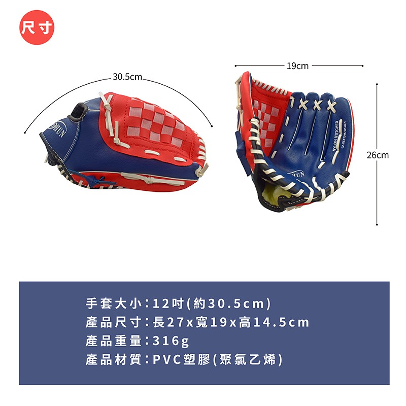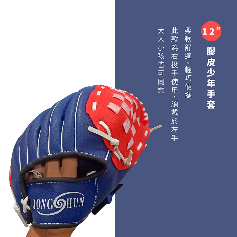 【Healgenart】12吋棒球手套 12"膠皮少年手套 MIT右手投手 親子互動戶外最佳選擇 (12吋) 299