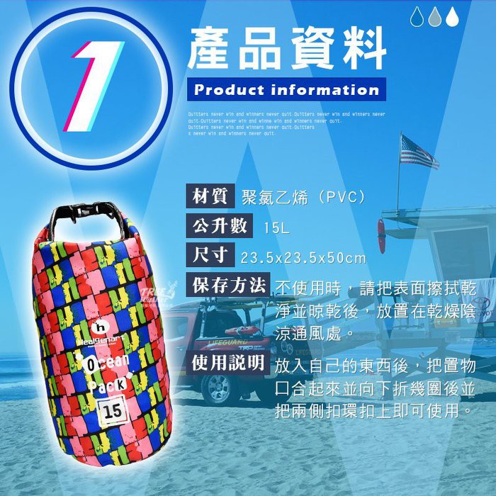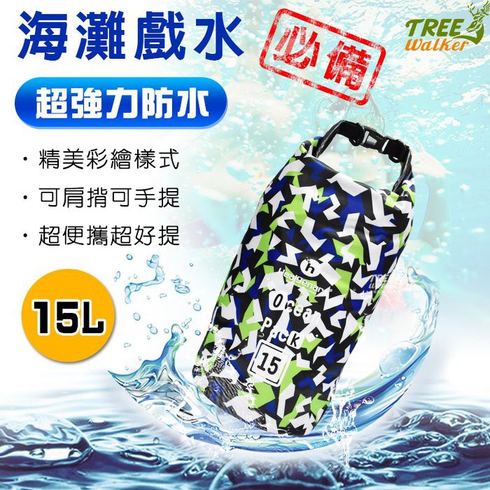 【Healgenart】彩繪單肩防水袋-15L 戲水泛舟 防水運動 筒型背包 出清商品不接受個人因素退換貨