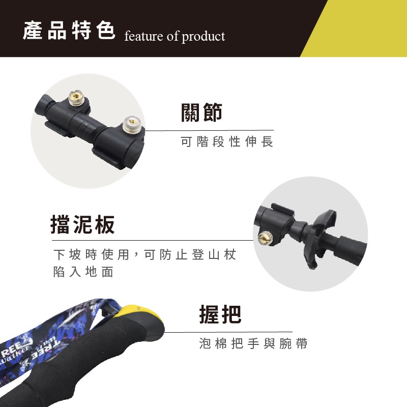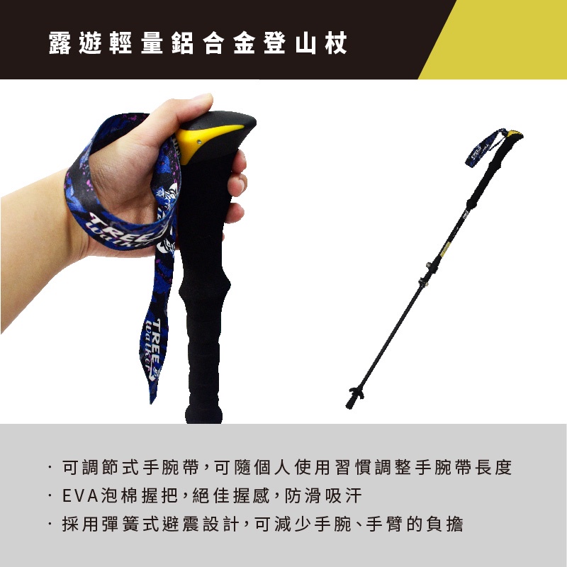【Treewalker露遊】露遊輕量鋁合金登山杖 輕量快扣登山杖 三節登山杖 伸縮式登山杖65-135cm 徒步登山杖