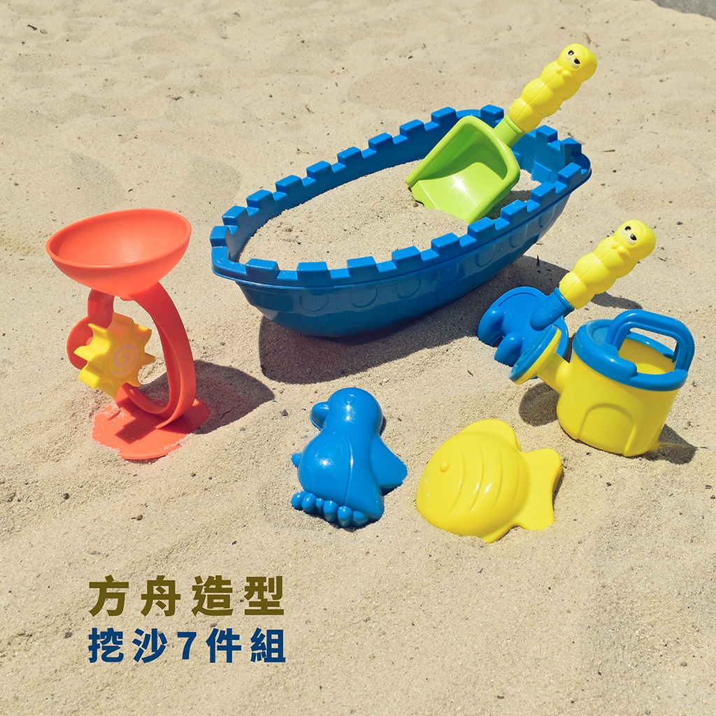 【Healgenart】方舟造型挖沙7件組 沙灘玩具 玩沙遊戲組 鏟子耙子 遊戲船 船玩具 沙灘組 玩砂組