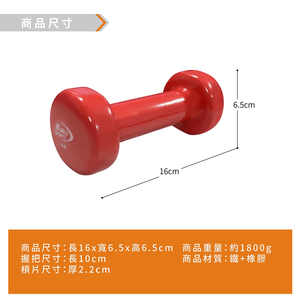 【Healgenart】韻律啞鈴4磅(4p)單支售 瑜珈有氧健身必備。瘦手臂~紅色