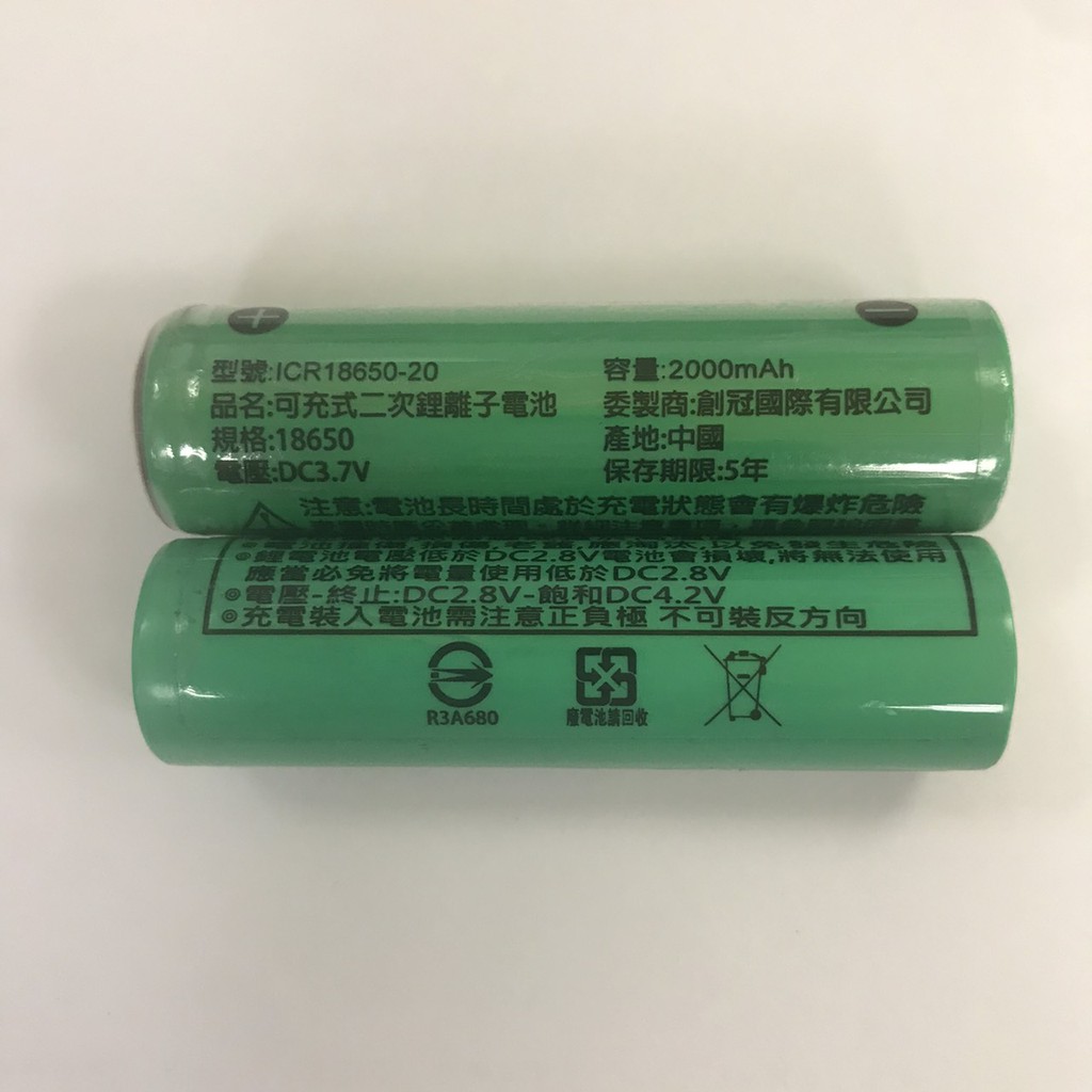 【TPI 創冠】 ICR18650鋰電池 2000mAh BSMI認證