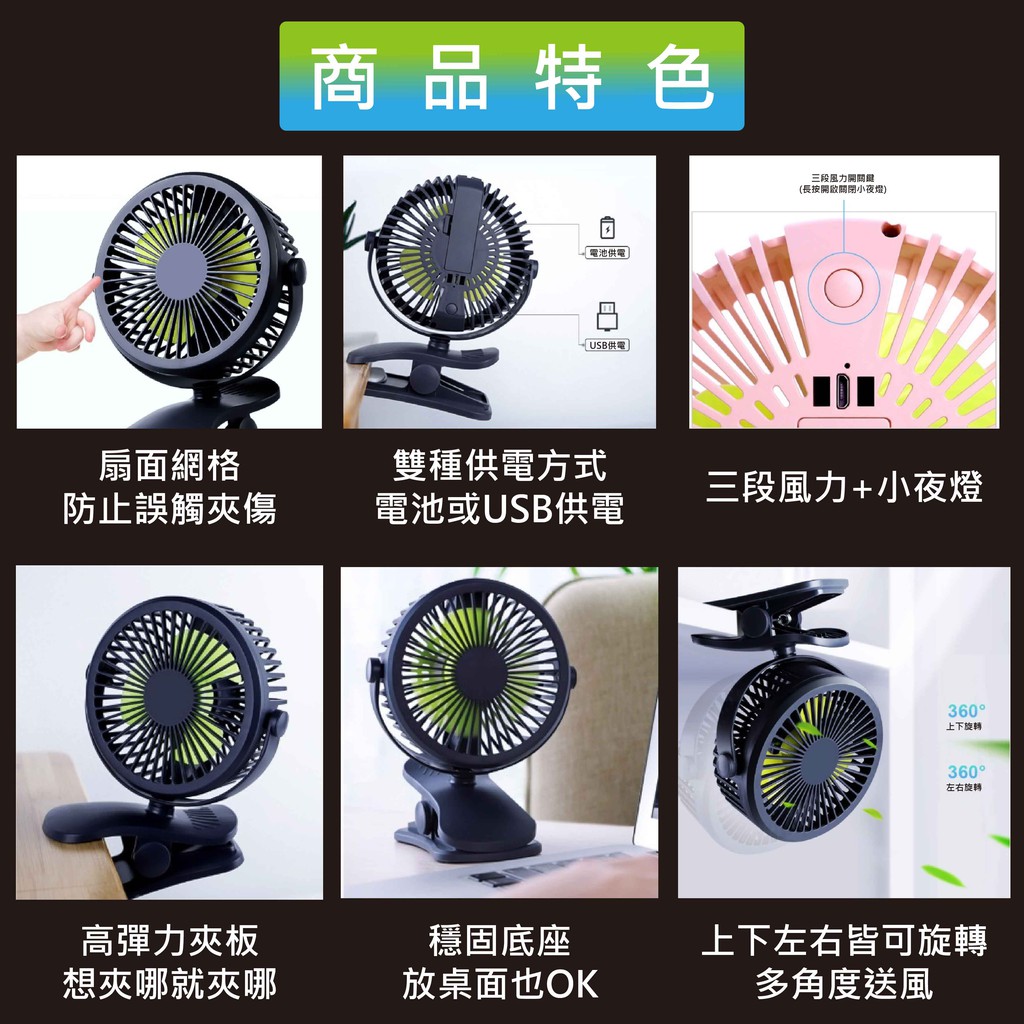 【Lapo】夾式小夜燈迷你風扇 YC-518