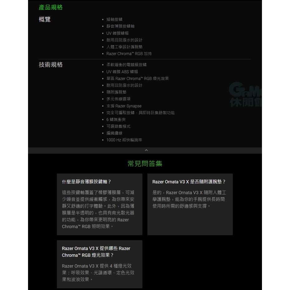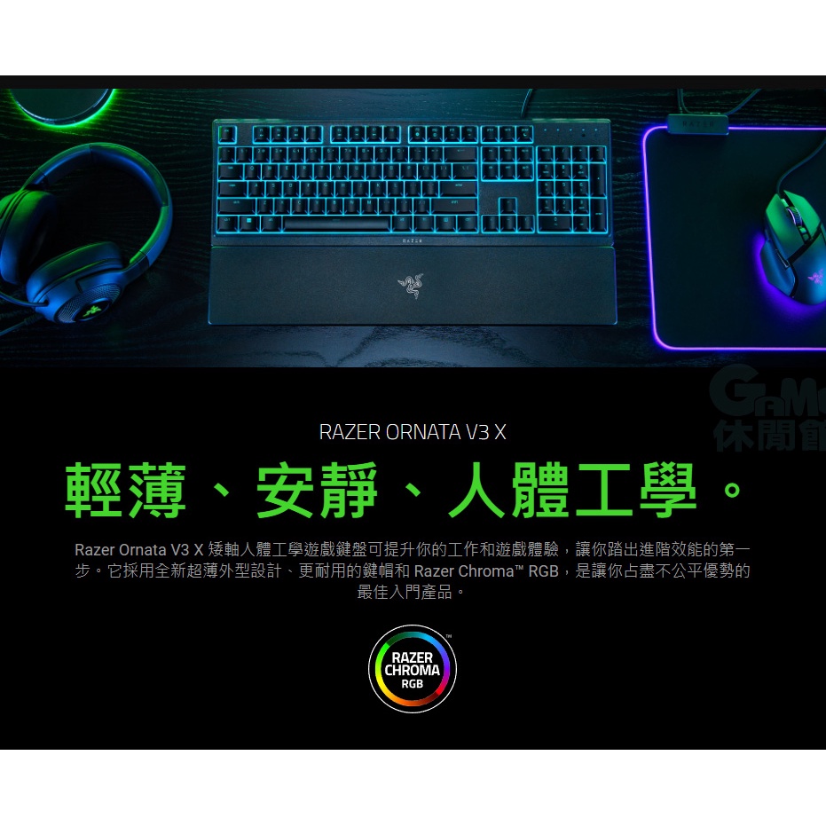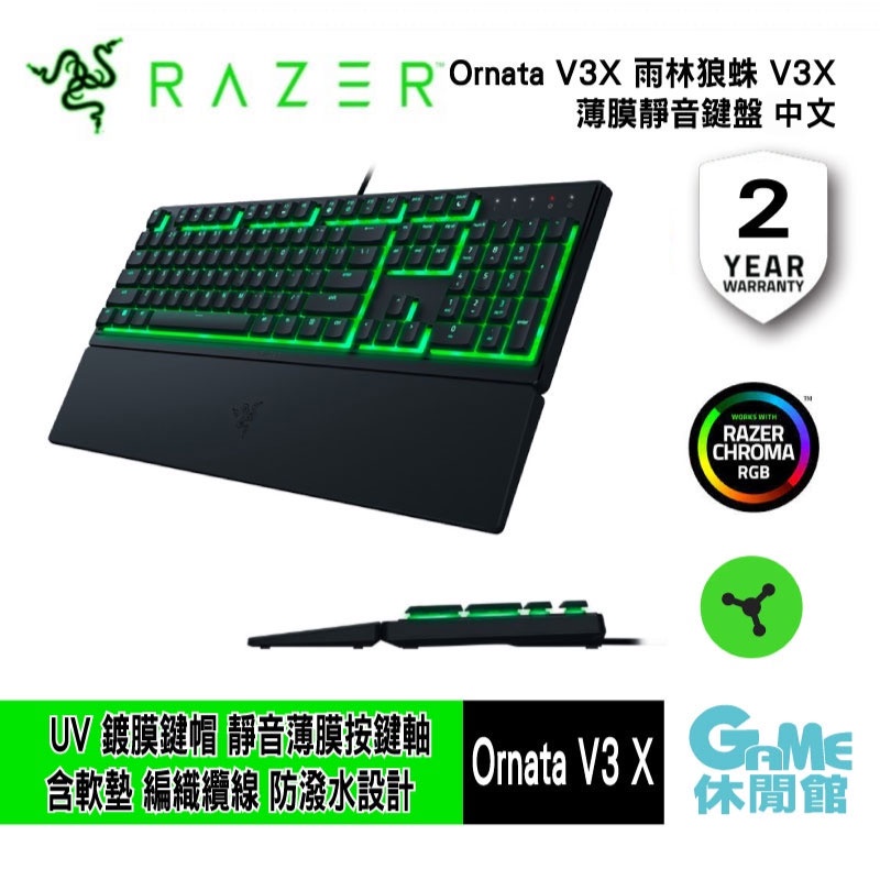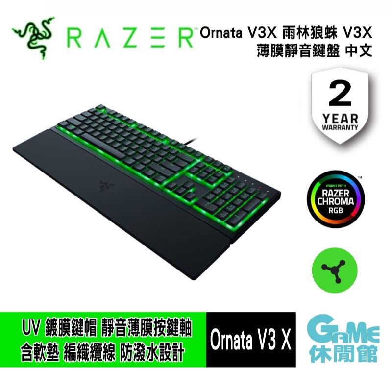 Razer 雷蛇 ORNATA V3 X 雨林狼蛛 V3X 靜音薄膜鍵盤 RGB 中文鍵盤【現貨】【GAME休閒館】