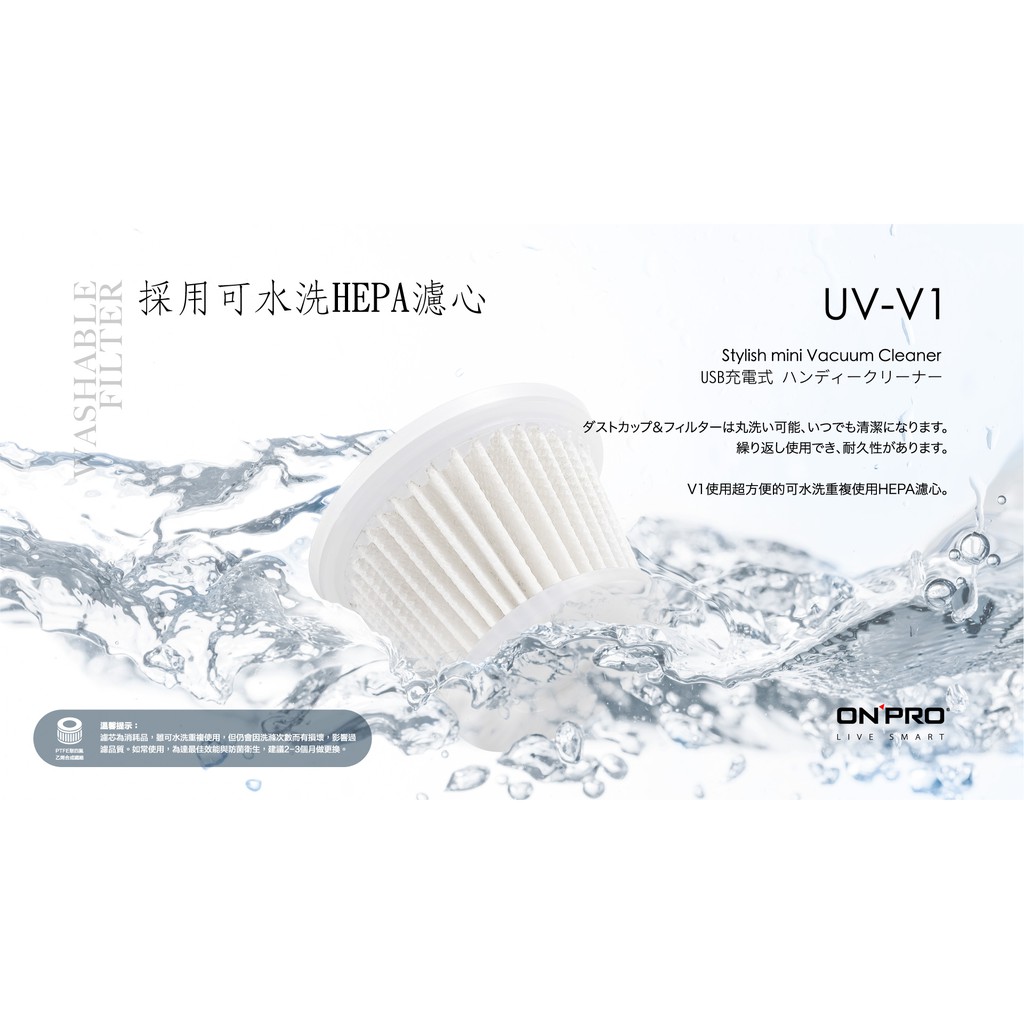 ONPRO UV-F6027 UV-V1第一代吸塵器專用-HEPA可水洗替換濾芯