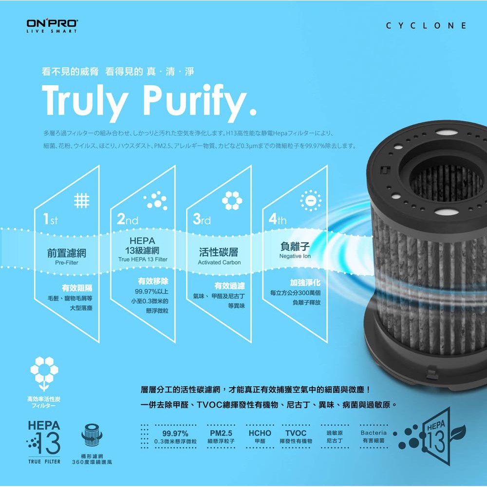 ONPRO UA-O2 空氣清淨機專用-HEPA13活性碳濾網