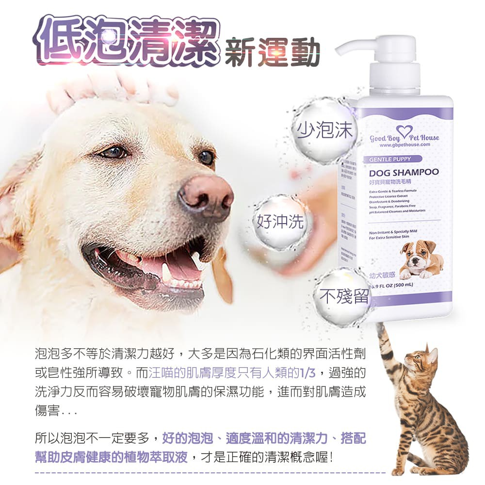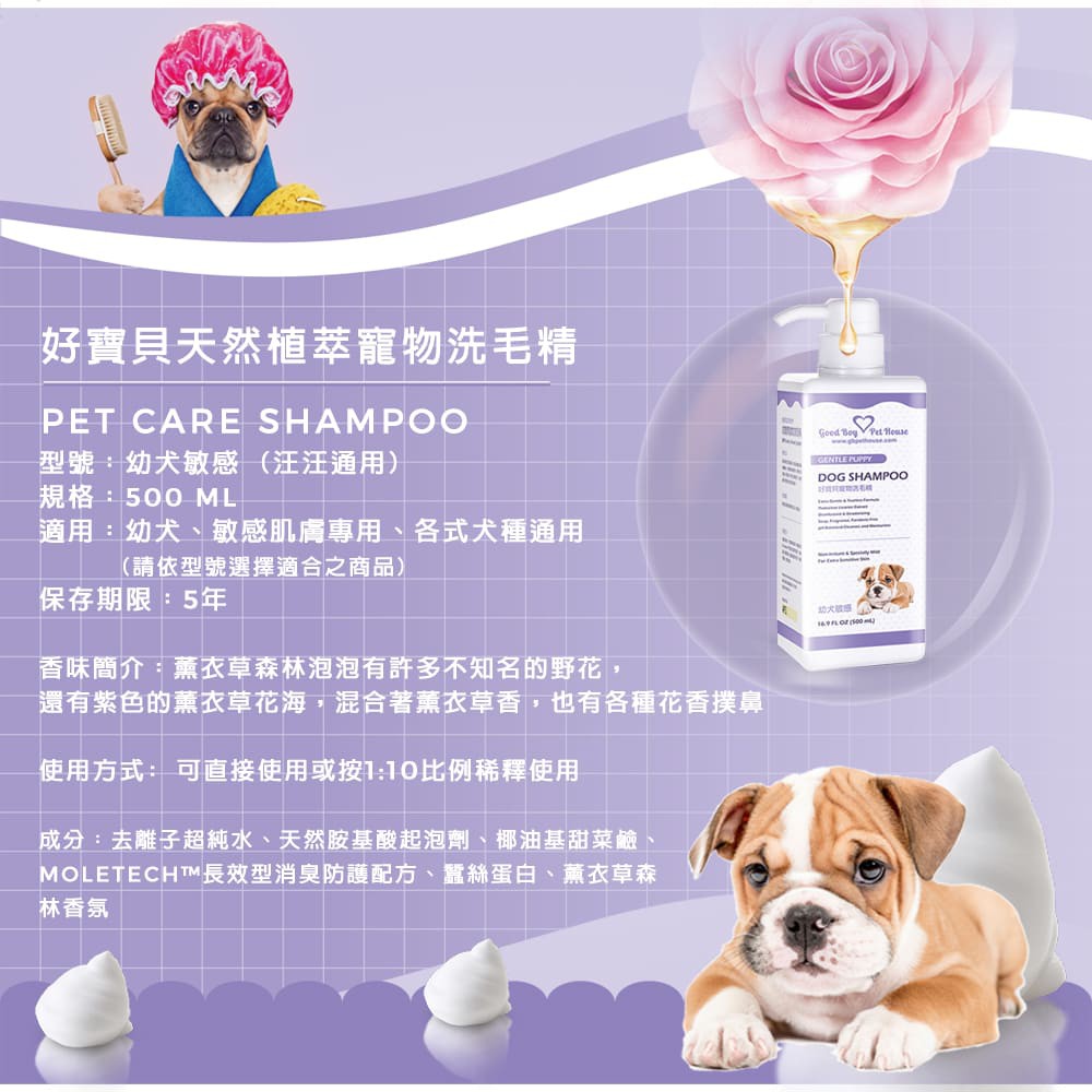 【GBPH好寶貝】幼犬敏感草本植萃肌膚養護寵物洗毛精 – 狗狗專用 薰衣草森林泡泡 500ml