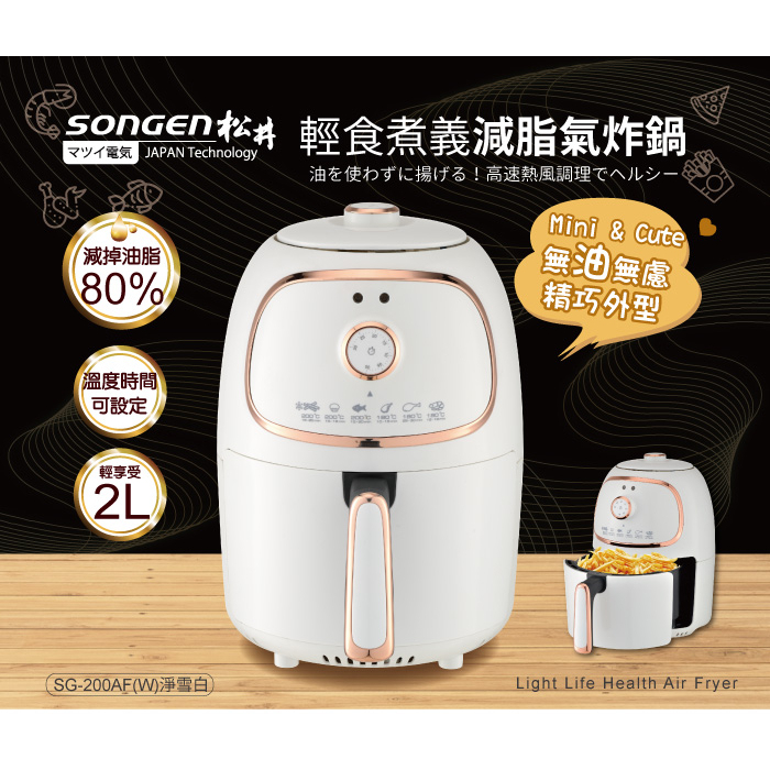 【日本SONGEN】松井輕食煮義減脂美食氣炸鍋/烤箱/烘烤爐(SG-200AF(W))