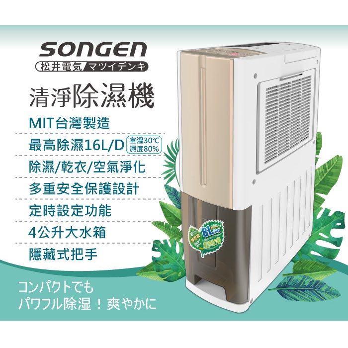 【SONGEN松井】一機雙效清淨除溼機(SG-108DHX買大送小加贈精美除濕機)