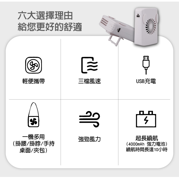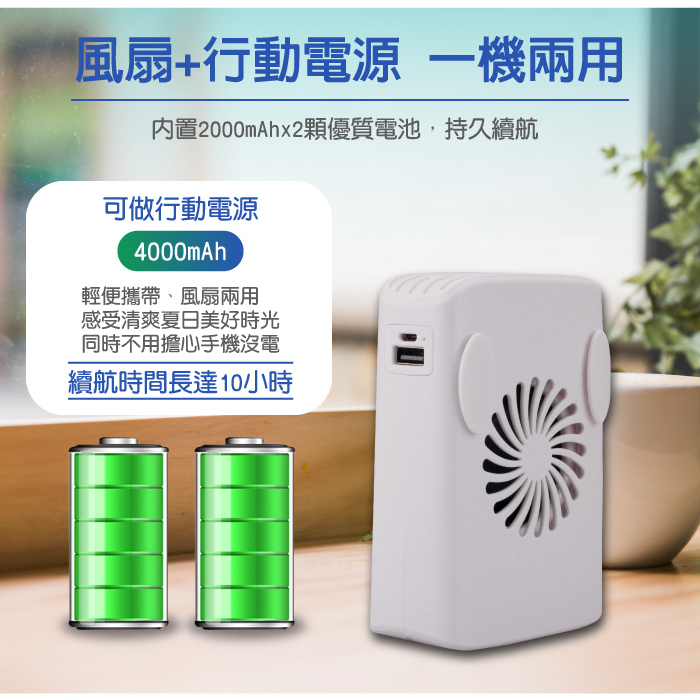 隨身風扇 掛脖風扇 運動風扇 手持風扇 迷你風扇 風扇 行動電源 大電量2000mAh電池2顆(全新福利品)