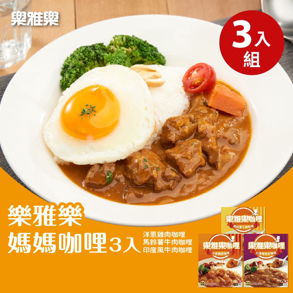 【樂雅樂】經典媽媽咖哩綜合3入組 (洋蔥雞肉+印度風牛肉+馬鈴薯牛肉)