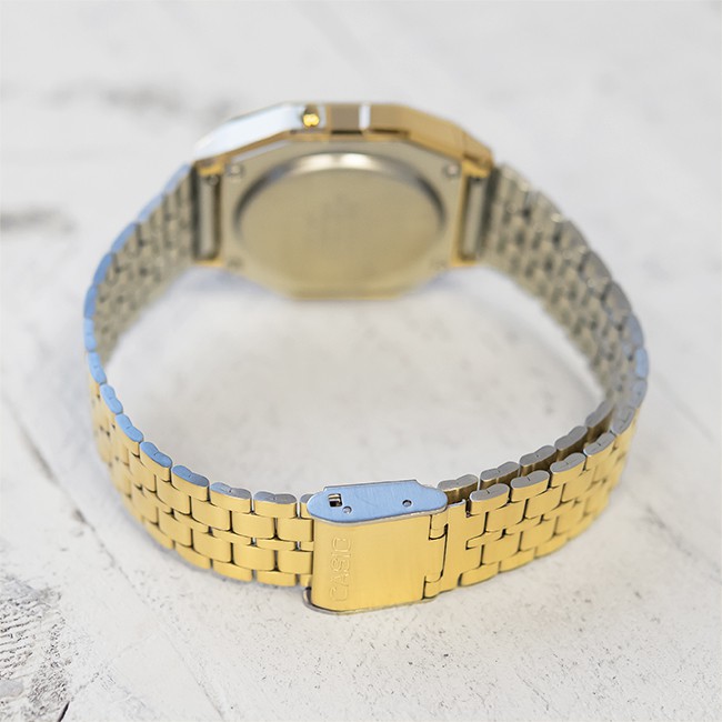 【CASIO】A159WGEA-1 復古造型電子錶/經典百搭/男女通用款/33mm/金x黑/公司貨【第一鐘錶】