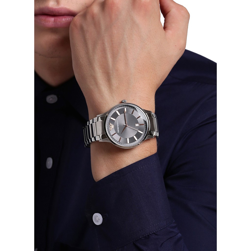 EMPORIO ARMANI (AR11179)《亞曼尼》43mm/大三針簡約日期窗款/銀灰【展示出清,無包裝盒】