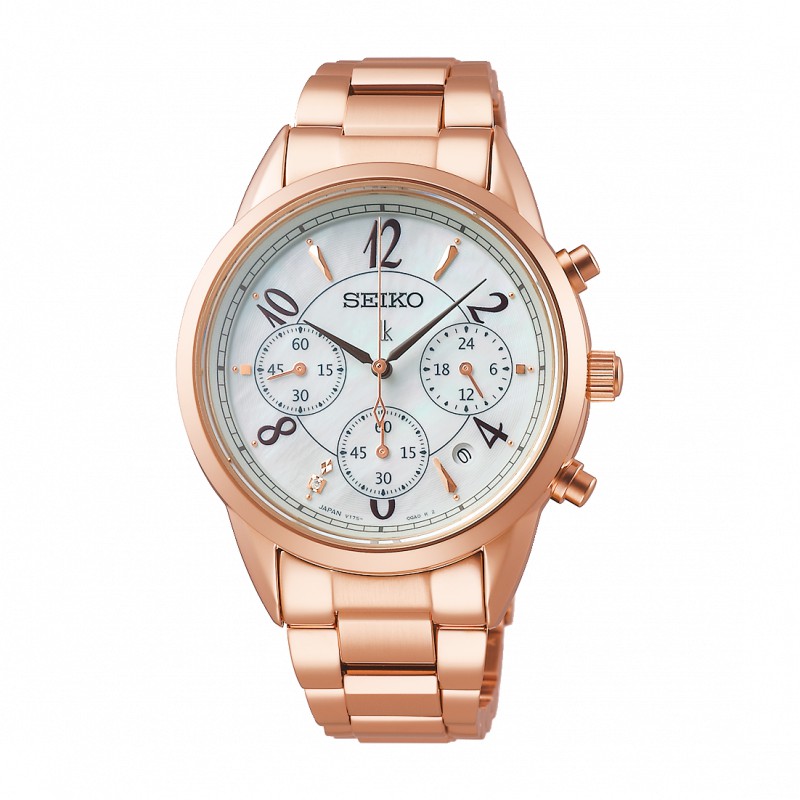 SEIKO【門市改裝清倉價】SSC792J1《LUKIA系列》36mm/光動能三眼計時款/貝殼面+真鑽/玫瑰金SK007