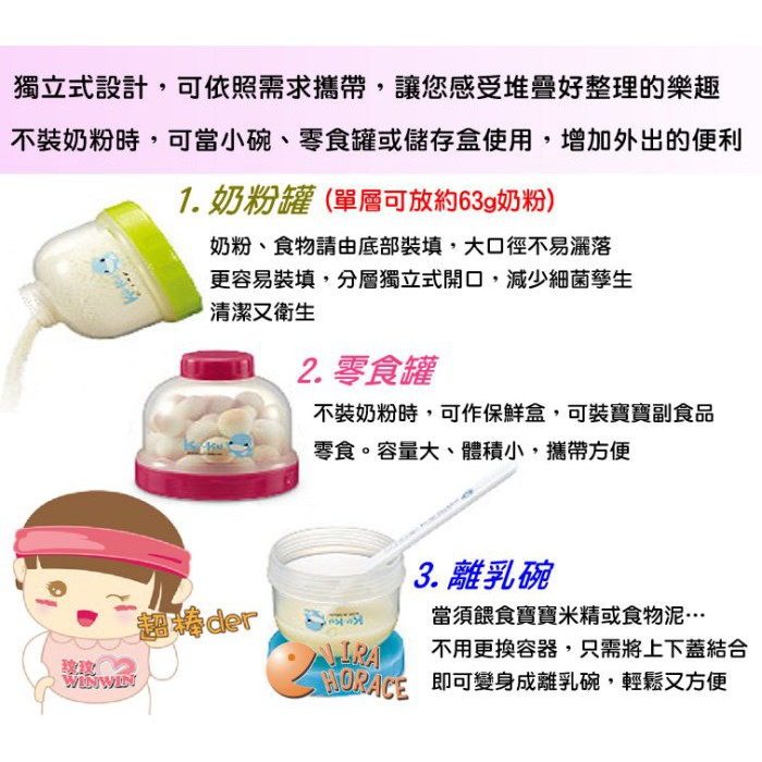 KU KU 酷咕鴨疊疊樂食物奶粉罐(奶粉分裝盒)獨立式開口設計 分層獨立使用 避免奶粉灑落5465 HORACE