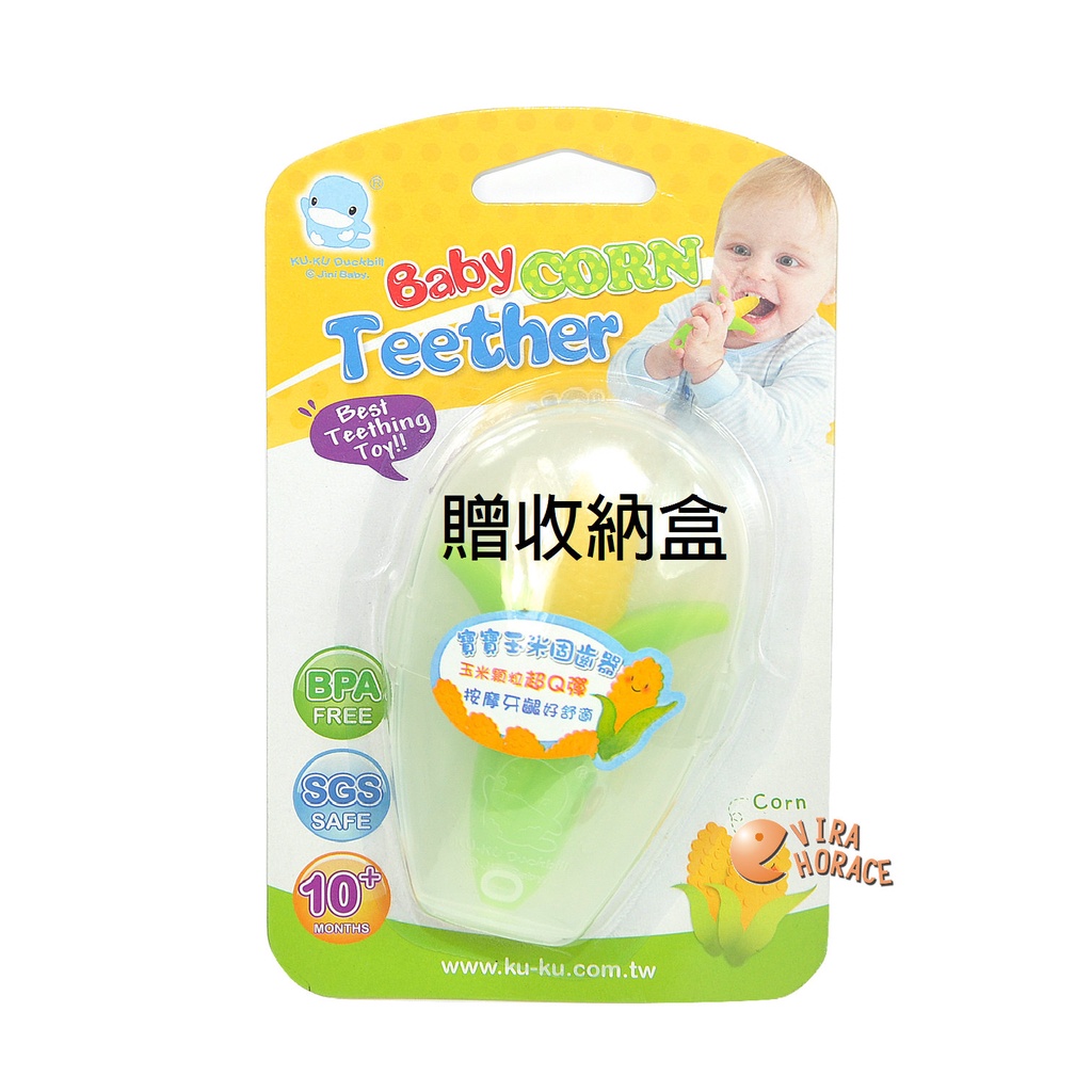 KU.KU 酷咕鴨寶寶玉米固齒器附收納盒 Ku-5389 可冷藏於冰箱,冰冰涼涼的寶貝會很喜歡 HORACE