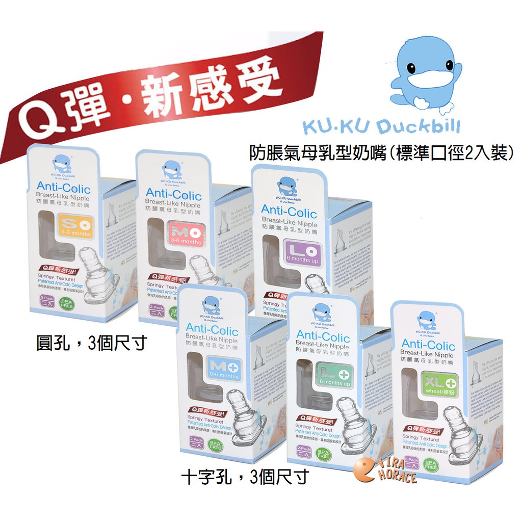 裸裝無盒出清價9元最後數量 KU.KU酷咕鴨 新一代標準口徑超柔軟防脹氣母乳型奶嘴 (六個尺寸可選)HORACE