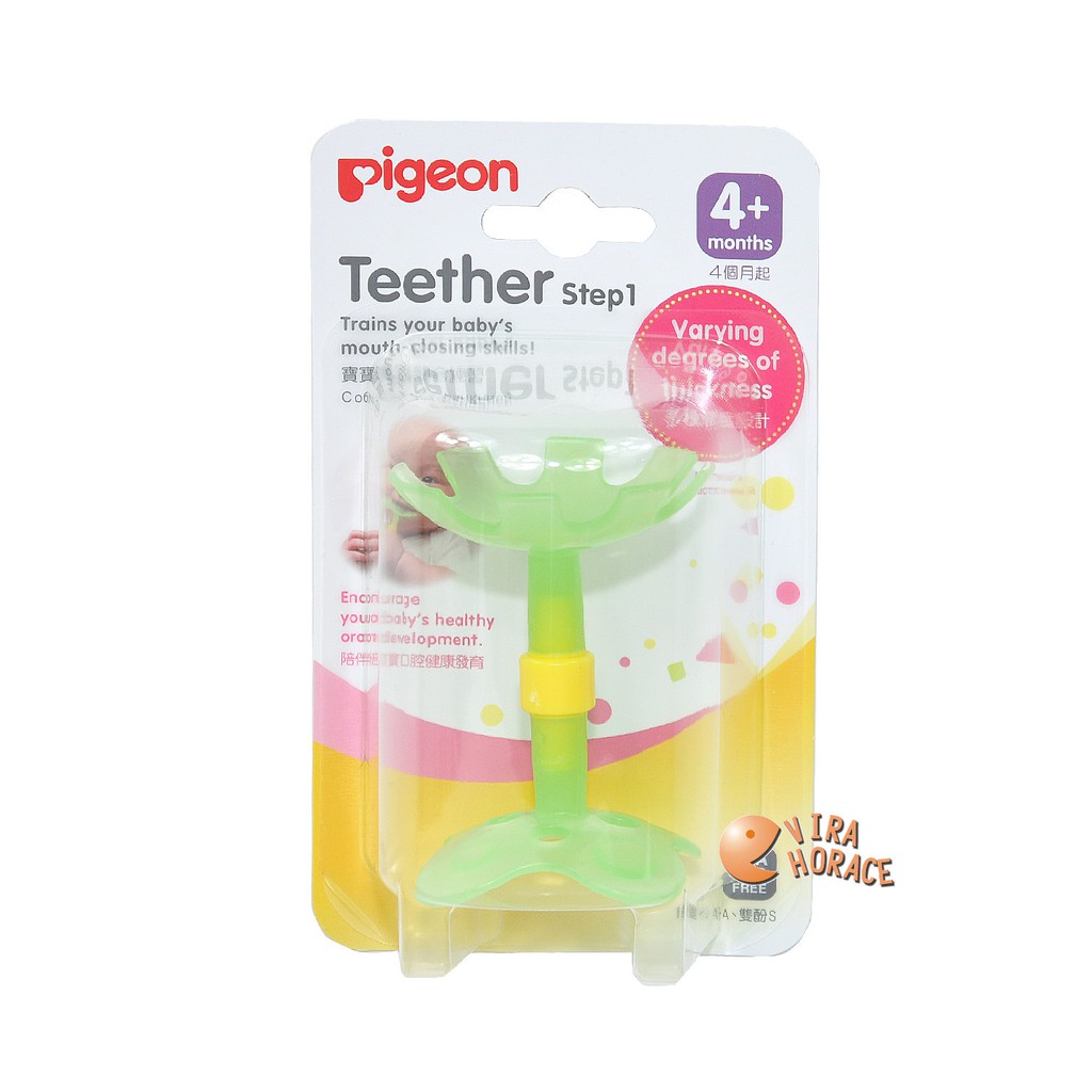 pigeon 貝親嘴唇訓練器(綠色小花)P13136透過4種不同的厚薄度,由厚至薄訓練寶寶閉嘴唇的自然動作 HORACE