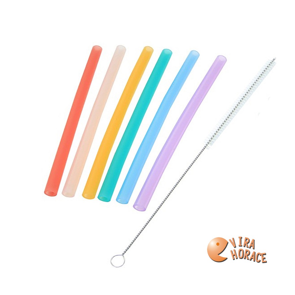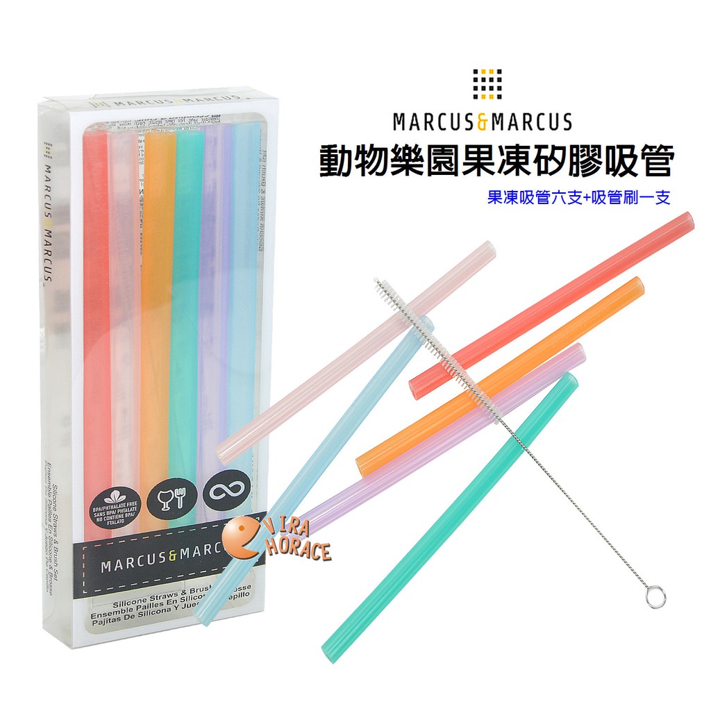 Marcus&Marcus 動物樂園果凍矽膠吸管7件組,果凍吸管六支+不鏽鋼吸管刷一支 HORACE