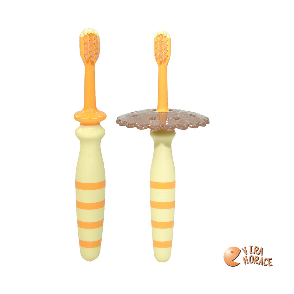 Richell 日本利其爾訓練型乳牙刷第一階12M(2支裝)餅乾造型護喉環,刷牙過程中防止深入喉嚨 420110