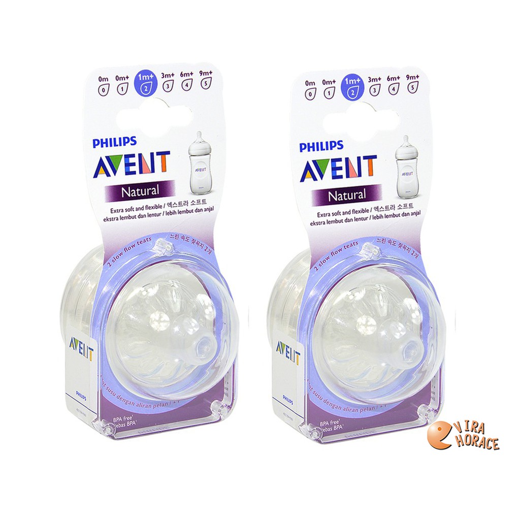 AVENT親乳感防脹氣奶嘴 全新升級親柔型奶嘴二圓孔(寬口徑 2入裝)買一送一超優惠 HORACE