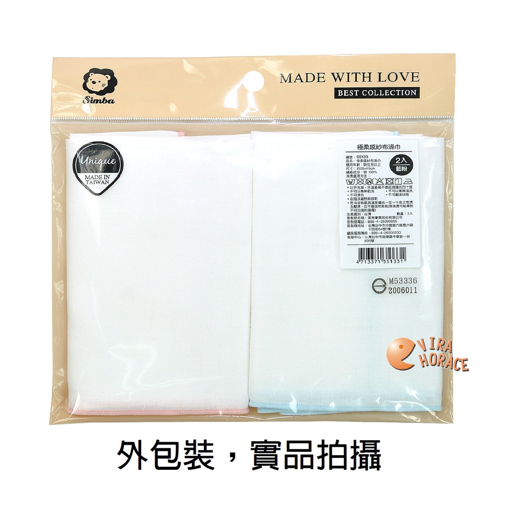 Simba 小獅王辛巴極柔感紗布澡巾(2入)不含甲醛、螢光劑,溫和不傷寶寶肌膚S.5133